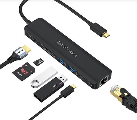 一绳(CableCreation)六合一拓展坞是其自主研发的,顾名思义,它将HDMI转接,2 个 USB3.0接口,一个PD快充接口,一个Type-C接口和一个千兆网口六个接口集合在一个拓展坞上,这真的太方便了,出门带上它,相当于带上了多个设备的连接器。